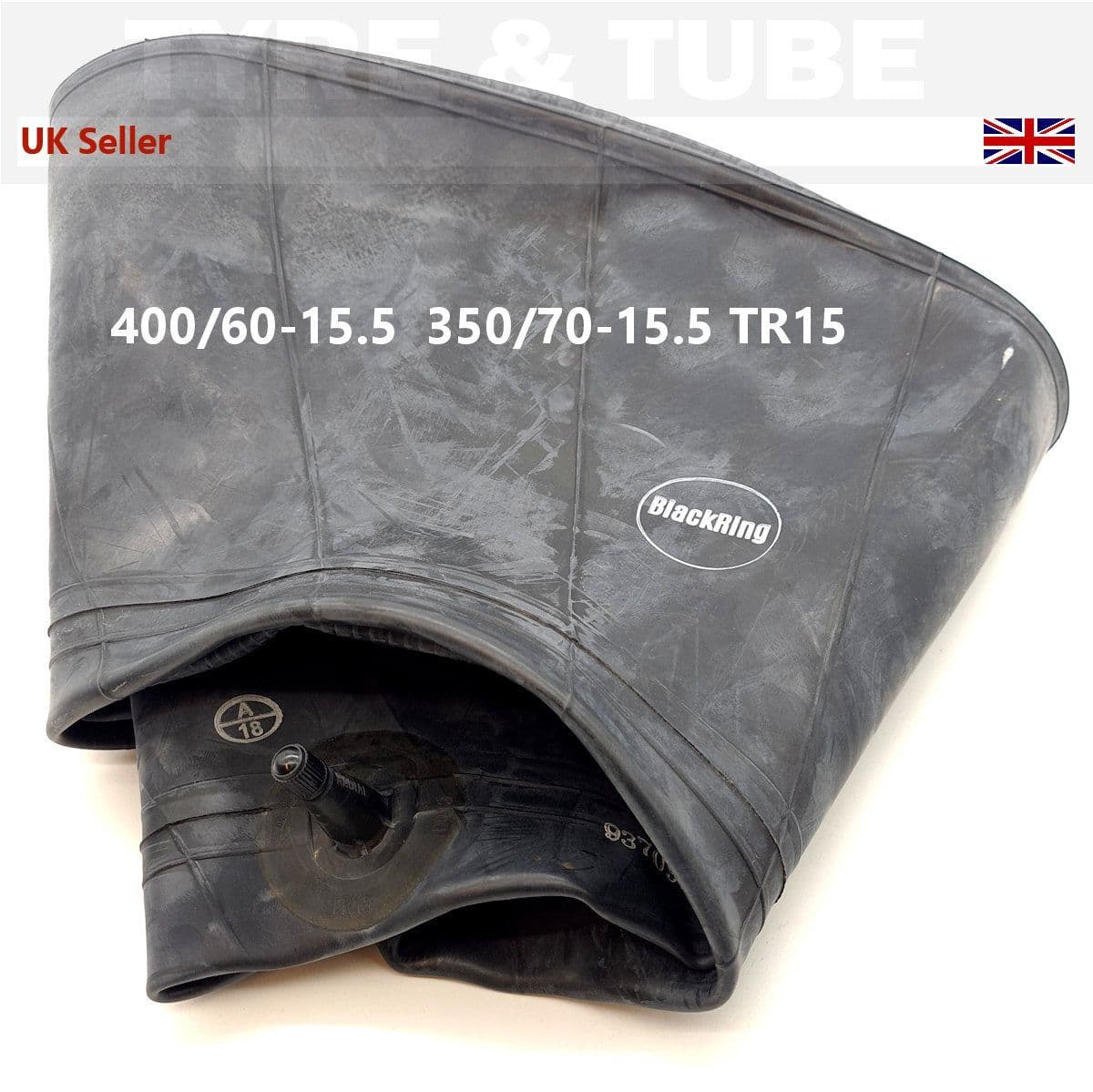 TR15 straight rubber valve. These tubes are ideal for medium size wheels. Inflation of inner tube can be achieved using a standard car foot pump as our tubes are fitted with a schrader type valve as used on car rims and wheels.- High quality replacement inner tube for tyre size 400/60-15.5 also fits 350/70-15.5 with FAST DISPATCH.